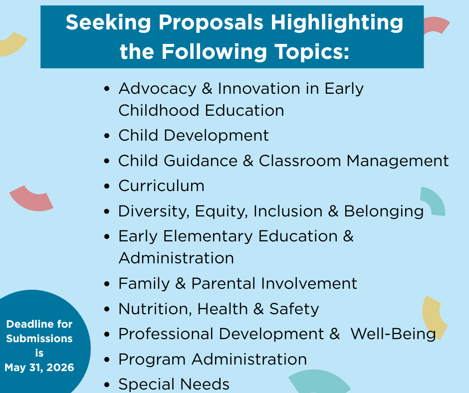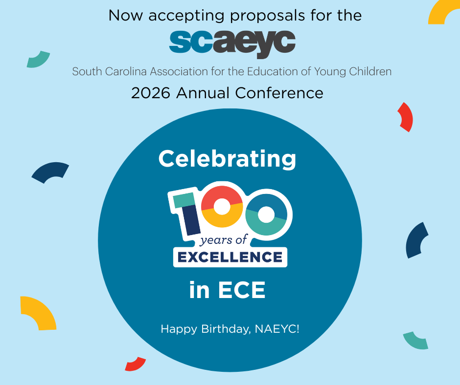 SCAEYC is now accepting proposal submissions for our 2026 Annual Conference! In honor of NAEYC’s centennial, this year’s theme is “Celebrating 100 Years of Excellence in ECE – Happy Birthday, NAEYC!”.